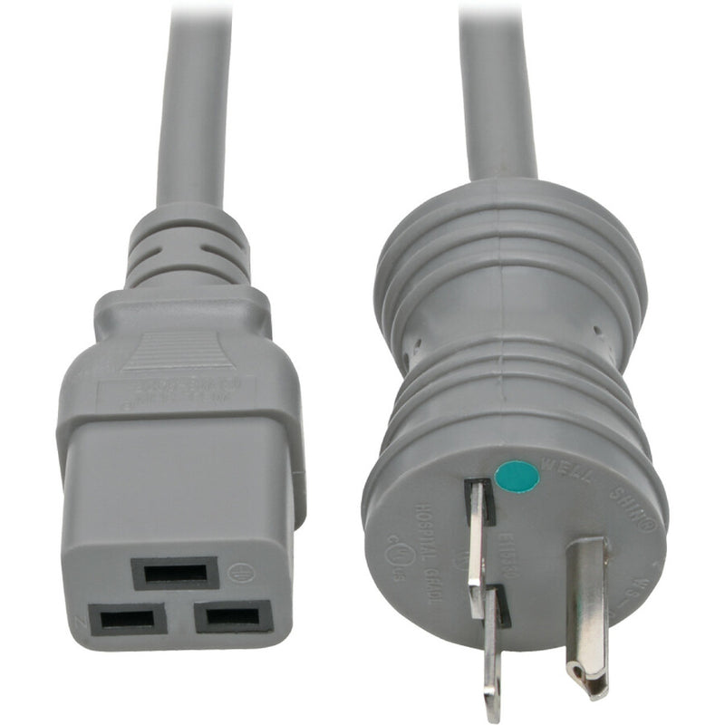 Eaton Tripp Lite Series Hospital-Grade Power Cord, NEMA 6-15P to C19 - Heavy-Duty, Green Dot, 15A, 250V, 14 AWG, 6 ft. (1.83 m), Gray