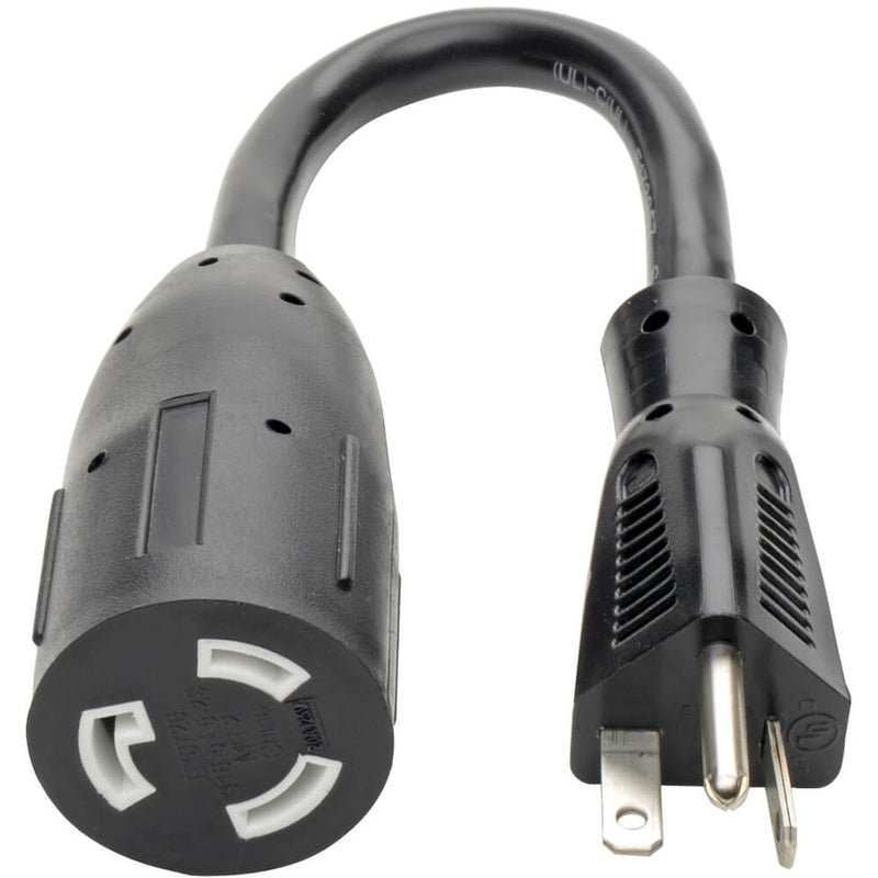 Tripp Lite's P044-06I six inch plug adapter has a locking 120V 20A (NEMA L5-20R) output receptacle and a straight-blade 120V 20A (NEMA 5-20P) input plug. Converts equipment with L5-20P locking input plug to a non-locking 5-20P input plug. Also serves as a convenient means of converting a NEMA 5-15/20R straight-blade receptacle to a locking L5-20R receptacle.