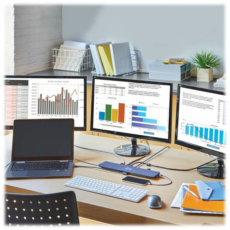 This universal docking station with PD Charging expands the potential of your tablet, laptop, Chromebook, MacBook, smartphone or PC's USB-C or Thunderbolt 3 port. Connect the dock using the included USB-C cable, and add 14 ports to your device: