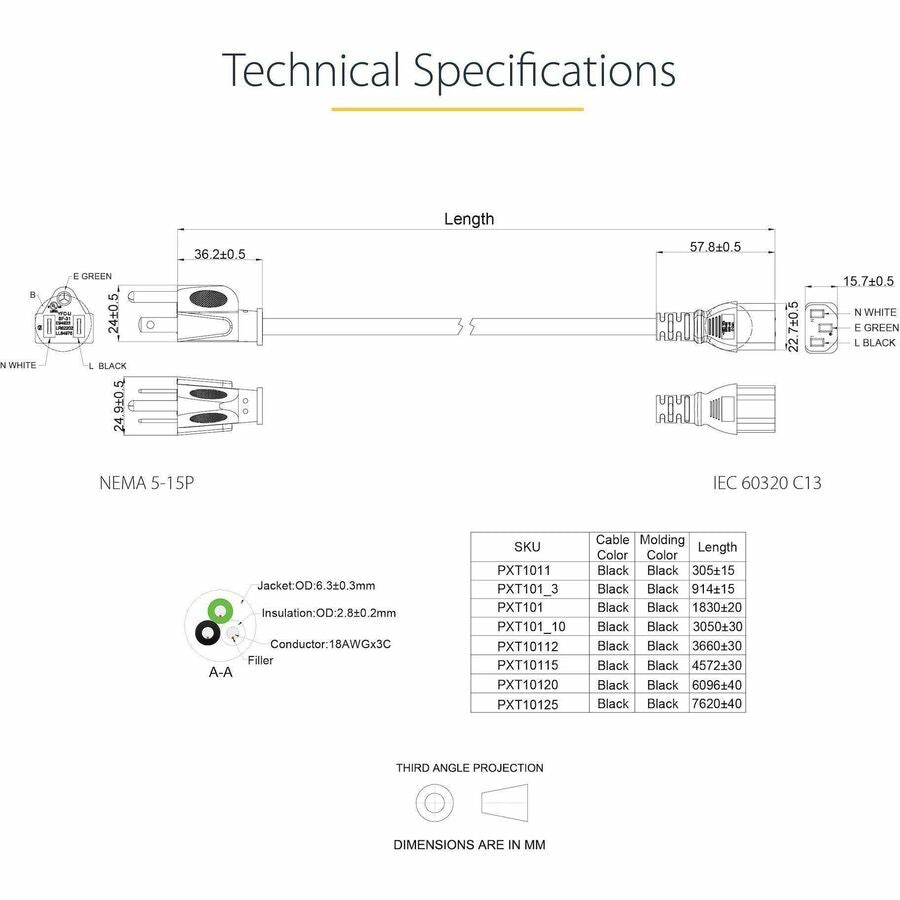StarTech.com 12ft (3.6m) Computer Power Cord, NEMA 5-15P to C13, 10A 125V 18AWG, Black Replacement AC PC Power Cord TV/Monitor Power Cable is backordered and will ship as soon as it is back in stock.