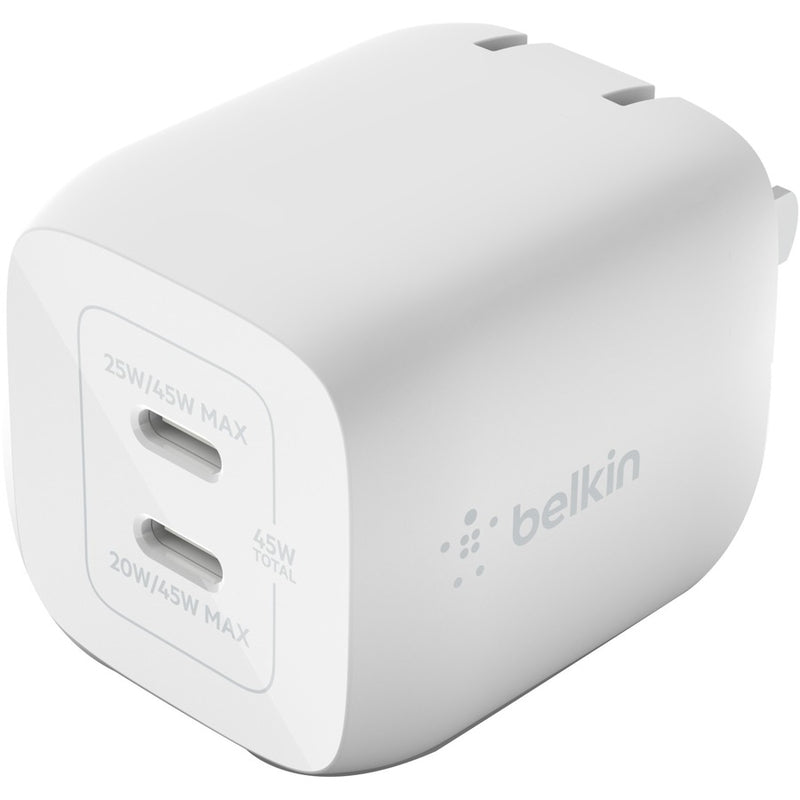 Belkin BoostCharge Pro Dual USB-C GaN Wall Charger with PPS 45W Laptop Chromebook Charging - Power Adapter
