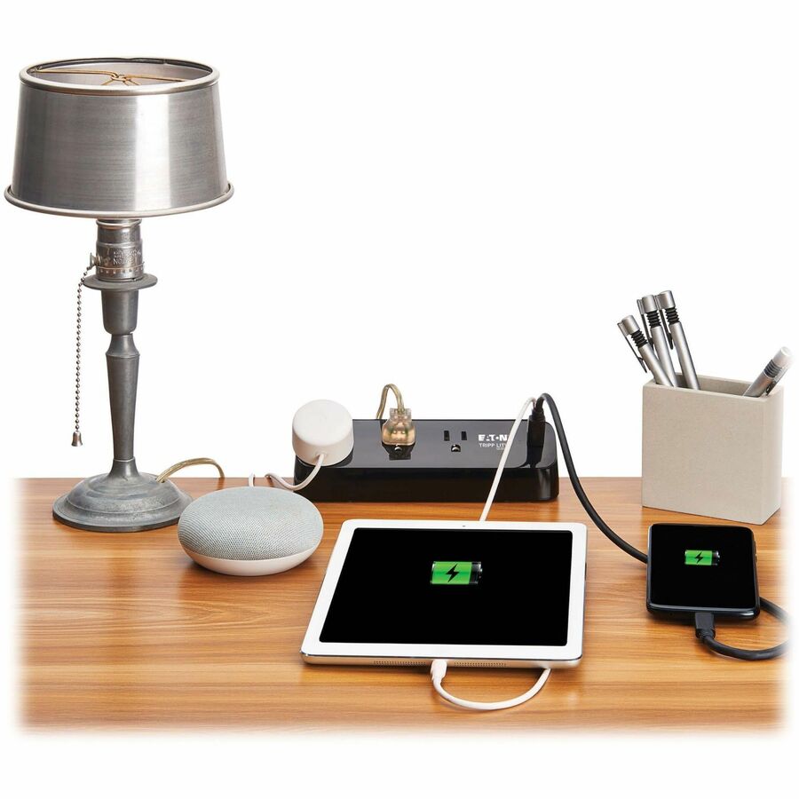 Eaton Tripp Lite Series Protect It! 3-Outlet Surge Protector with 2 USB-C Ports - 5-15R Outlets, 900 Joules, 30W PD Charging, Desk Clamp, 10 ft. (3 m) Braided Cord, Black