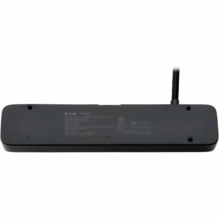 Eaton Tripp Lite Series Protect It! 6-Outlet Surge Protector with 2 USB-C Ports - 5-15R Outlets, 900 Joules, 30W PD Charging, Desk Clamp, 10 ft. (3 m) Braided Cord, Black