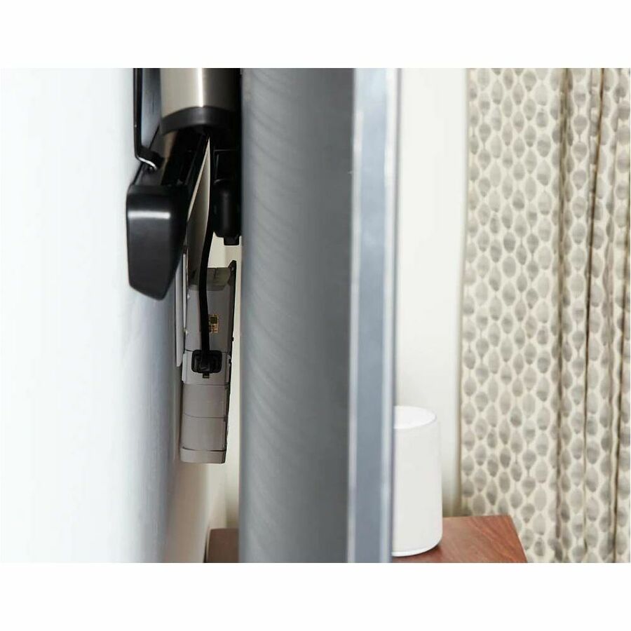 - Low-profile design fits behind mounted TVs and other tight spaces