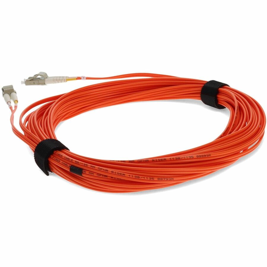 This is a 20m LC (male) to LC (male) orange duplex riser-rated fiber patch cable. OM2 cables have a standard jacket color of orange and a core size of 50m. They support 10 Gigabit Ethernet for lengths measuring up to 82 meters, but are more commonly used for 1 Gigabit Ethernet applications. This riser cable is best for used in vertical tray applications, such as between floors via cable risers or in elevator shafts. These cables must self extinguish. A duplex cable is a two-strand fiber optic patch cable that works best with transceivers that both transmit and receive. Our patch cables are 100% compliant for all of your networking needs. Our products are guaranteed by federal law to not affect or void OEM warranties.