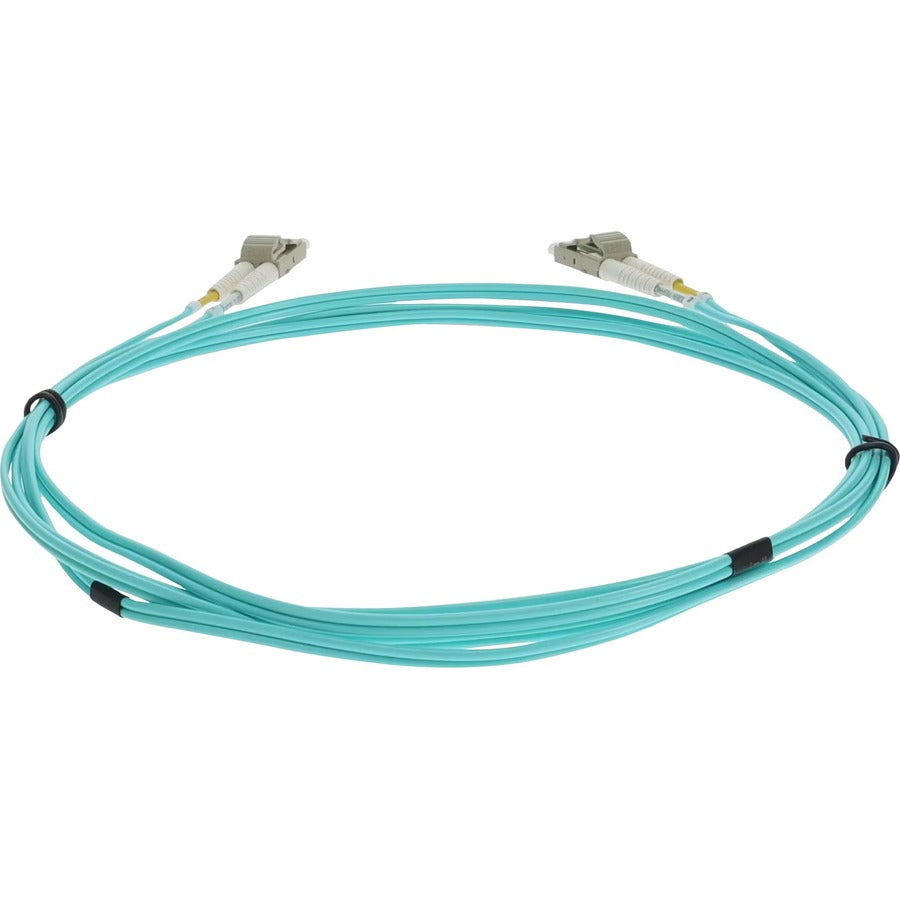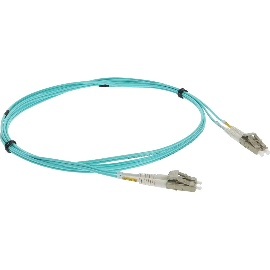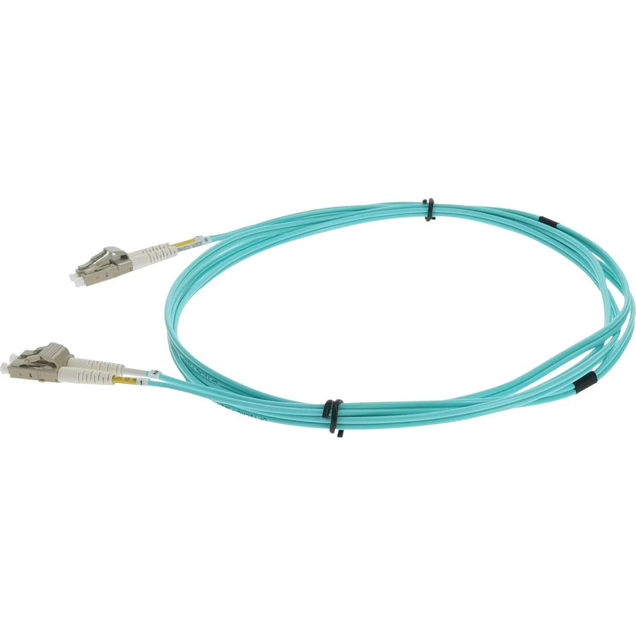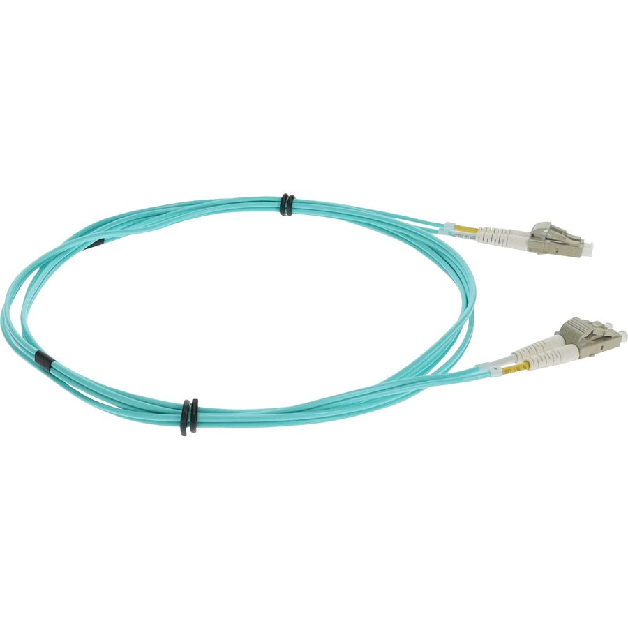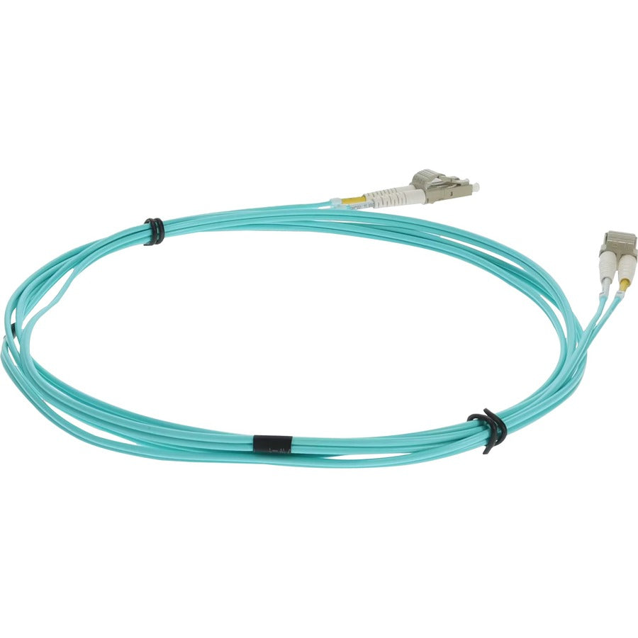 This is a 3.5m LC (male) to LC (male) aqua duplex riser-rated fiber patch cable. An OM4 cable has a core size of 50m microns that supports 10 Gigabit Ethernet at lengths measuring up to 550 meters, and 100 Gigabit Ethernet measuring up to 150 meters and is reverse compatible with OM3. This optical fiber, nonconductive, riser (OFNR) cable is best suited for use in interior fiber-optic applications. A duplex cable is a two-strand fiber optic patch cable that works best with transceivers that both transmit and receive. Our patch cables are 100% compliant for all of your networking needs. Our products are guaranteed by federal law to not affect or void OEM warranties.