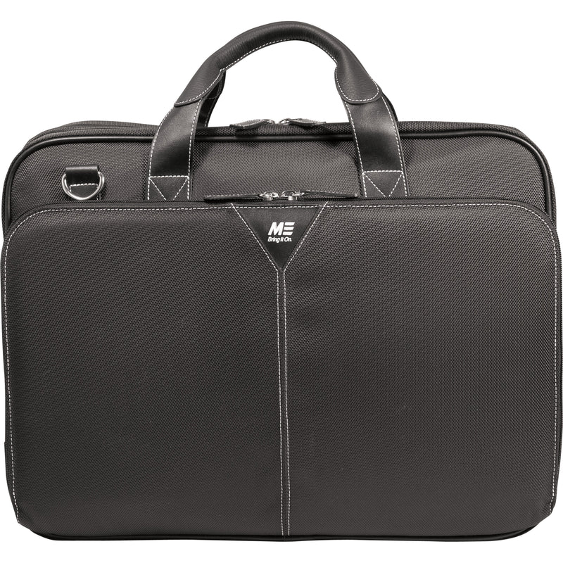 Part of the new "Metro" Collection by Mobile Edge, the Premium 16" Nylon Briefcase is the perfect case for the professional with a sense of style. This sleek and lightweight laptop case is built with a rugged 1680D Ballistic Nylon exterior. Stylish contrast stitching and polished nickel fittings enhance the elegant design. In addition to the padded computer pocket, there are two full-size interior compartments for your work papers, legal-size file folders and travel accessories. A separate divided file section ensures you have space for all your work papers. An easy-access workstation features elastic pockets for your cell phone, iPod, media cards, flash drives, plane tickets, pens plus a full-length secure mesh pocket for travel receipts or other miscellaneous items. Other features include leather-wrapped carry handles, a removable/adjustable shoulder strap, key fob, heavy-duty steel fittings, a full-size exterior magazine pocket and a convenient trolley strap. Lifetime Warranty