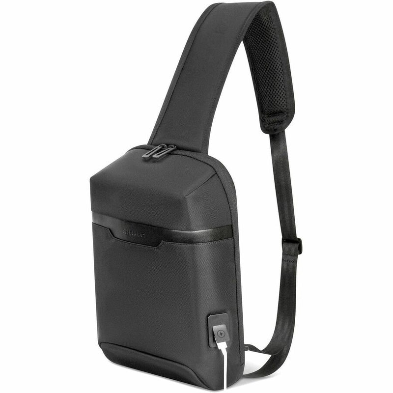 Introducing the Sling Bag from the Onyx Collection, designed for the modern individual on-the-go, perfect for carrying daily essentials, tech gadgets, and travel documents effortlessly. Crafted with premium water-resistant nylon material to offer both durability and sleek style. This versatile bag is designed to keep you organized and secure, featuring a specialized RFID pocket to protect your sensitive information from digital theft. The padded tablet sleeve ensures your device stays safe and protected, making it the perfect companion for both work and leisure. With a built-in USB-C charging port, you can easily stay powered up and connected while on-the-go. One of the standout features of the Champs Sling Bag is its reversible strap, allowing for convenient crossbody wear that adapts to your needs. Whether you're navigating a busy city or exploring new destinations, this ergonomic design provides comfort, flexibility, and the ability to carry all your daily essentials in one compact bag.