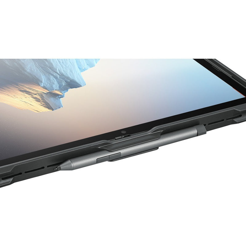 Custom designed case for the ThinkPad X12 Detachable. Designed with a slim, clean profile and the perfect balance of functionality and protection. This case allows full access to tablet features including the kickstand, ports and touch screen, plus keyboard compatibility. Perfect for most users, its features include a soft-touch and easy-to-clean silicon hand strap, convenient built-in pen clip, tablet keyboard attach capability, bump and scratch protection, low profile and shock absorbing corner protection, and an essential degree of drop protection (up to 80cm).