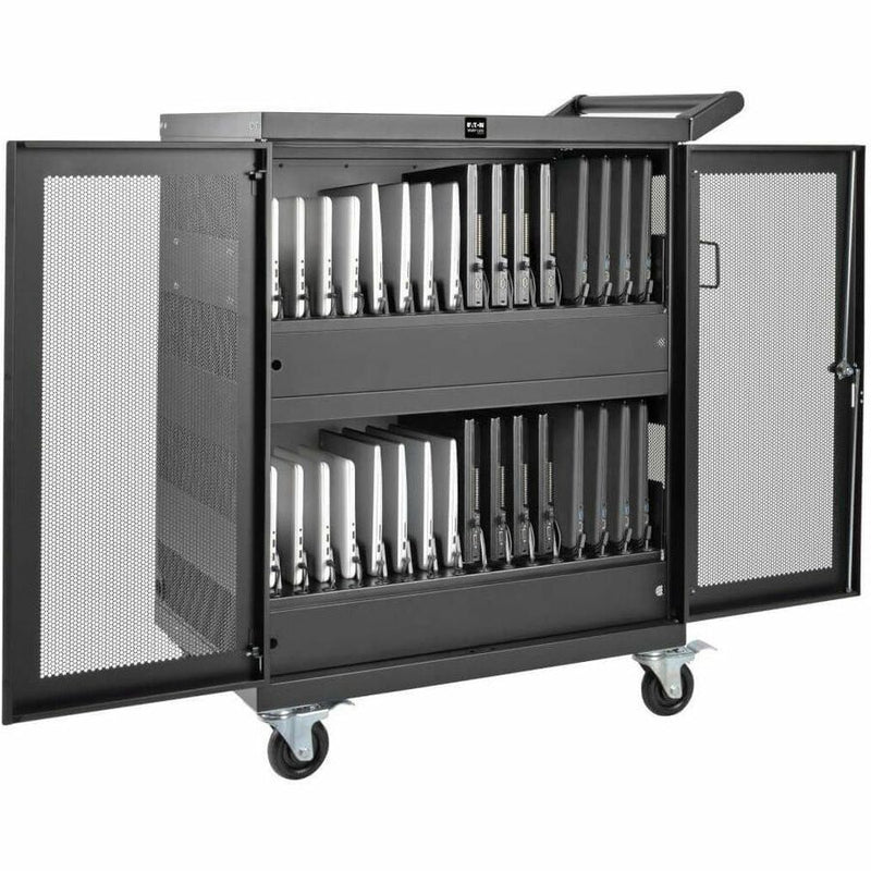 Eaton Tripp Lite Series Multi-Device Charging Cart, 32 AC Outlets, Chromebooks and Laptops, Wall-Mount Option, Black