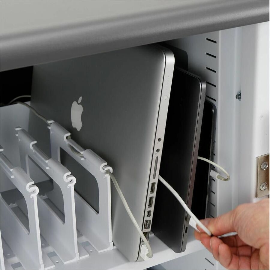 • Adjustable rows & dividers: Holds any device: 24 Chromebooks and tablets, or 16 laptops with 15" screens