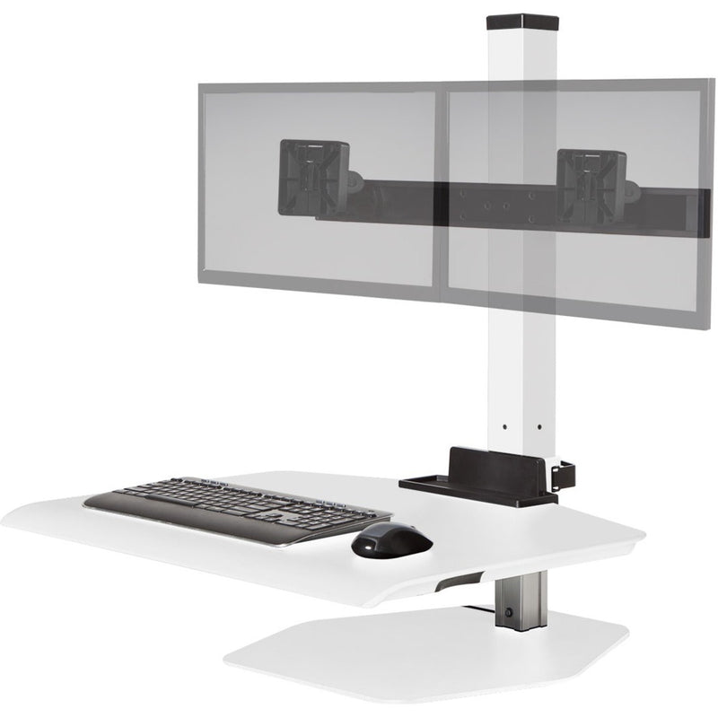 Winston Workstation instantly converts any desk into a sit stand workspace, boosting health and productivity. This workstation supports two monitors and features push-button height adjustment.