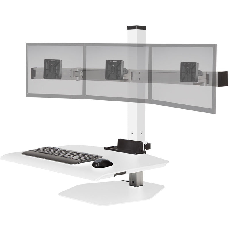Winston Workstation instantly converts any desk into a sit stand workspace, boosting health and productivity. This workstation supports three monitors and features push-button height adjustment.