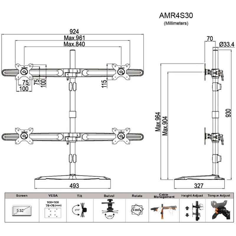 Amer Quad Monitor Stand Mount for 32" Displays is backordered and will ship as soon as it is back in stock.
