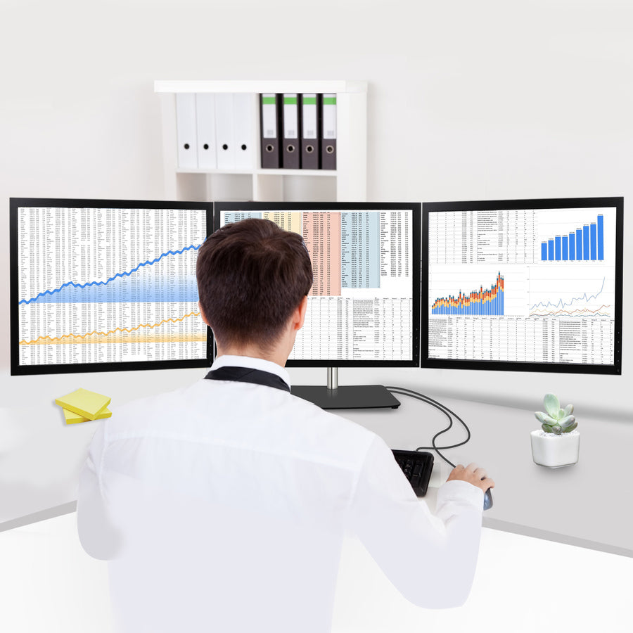- Side hinges support curved-in viewing angle for the left/right monitors