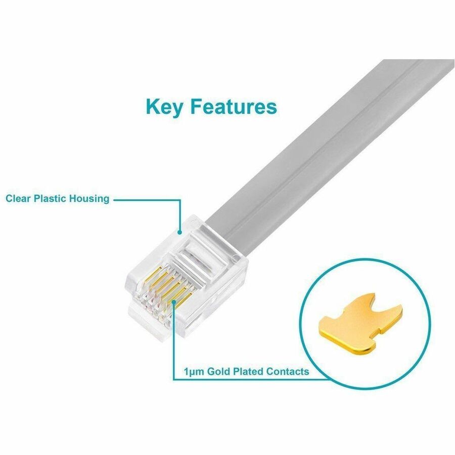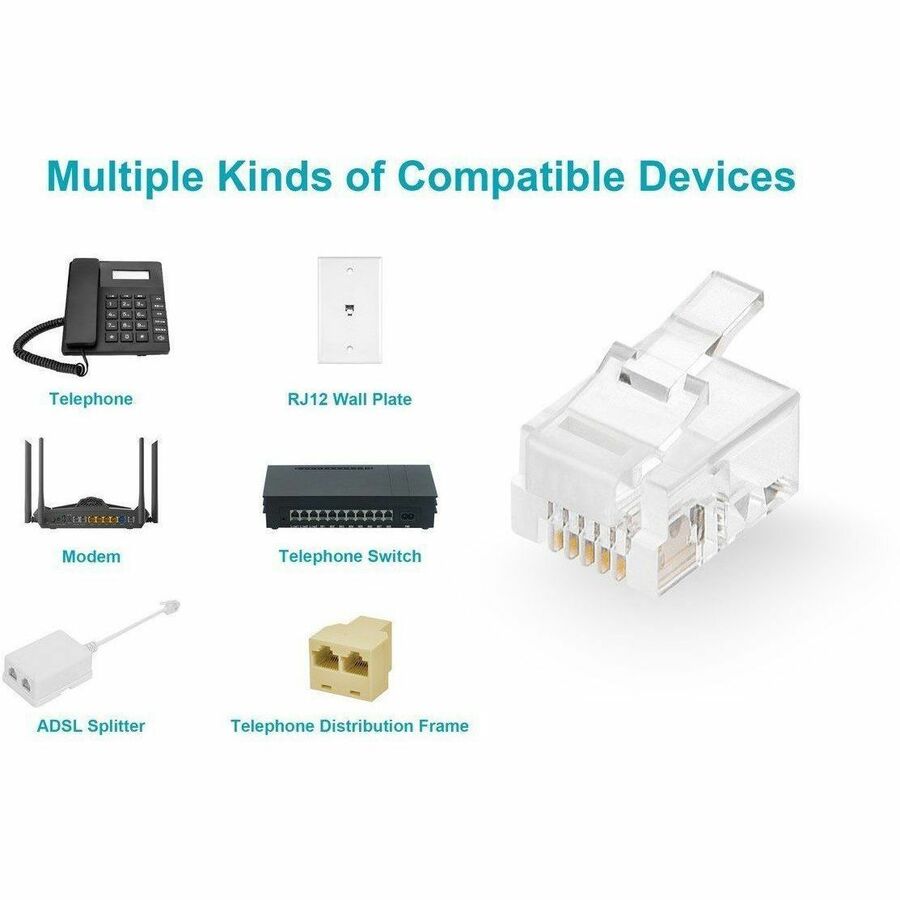 Monoprice 6P6C RJ12 Modular Plugs for Flat Solid/Stranded Cable, 1u, 2 Prongs Clear, 50-PK - 50 / Pack - 1 x RJ-12 Phone - Male - Clear