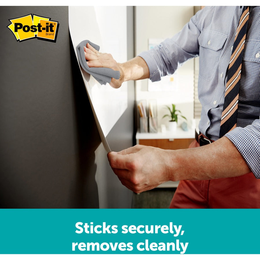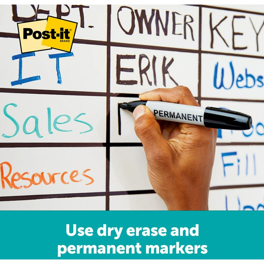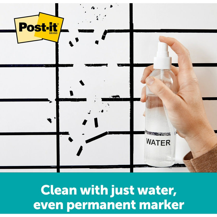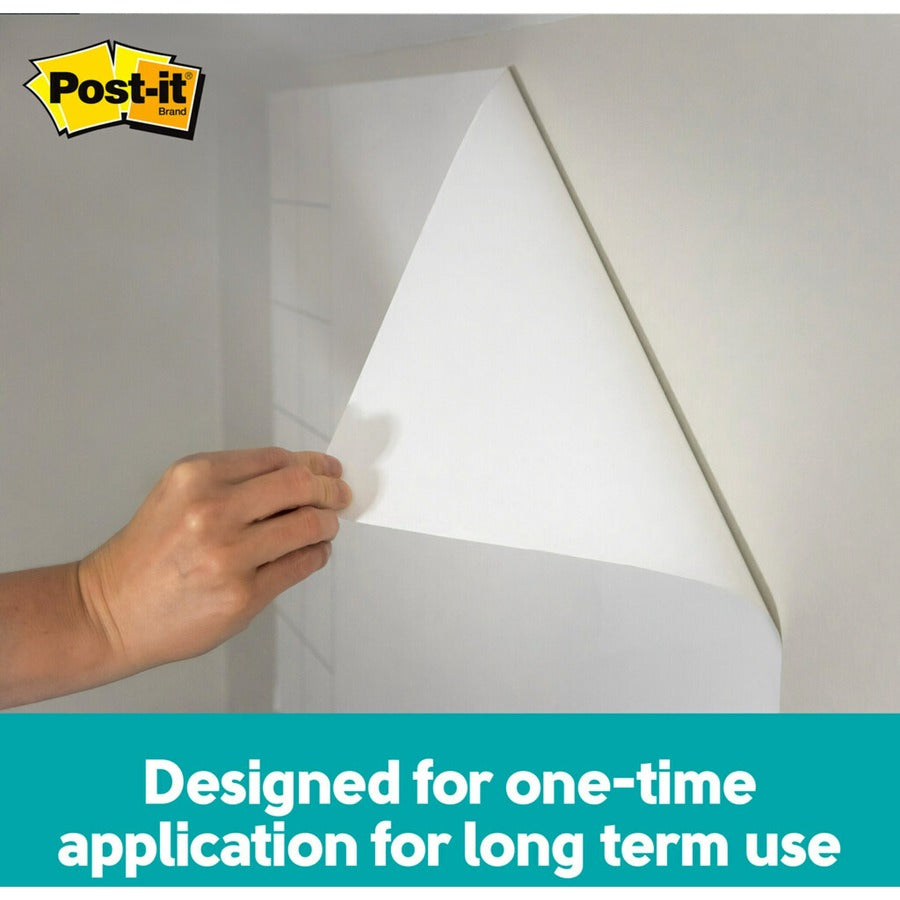 Post-it Flex Write Surface gives you the flexibility to instantly transform your worksurface into a whiteboard and the freedom to write with even a permanent marker without stains. Long-term planning is easier than ever with the use of permanent markers to prevent accidental smearing and erasing. Permanent marker wipes away with water. Remove writing from a dry-erase marker with a cloth. With just three easy steps, this whiteboard surface is simple to use to capture your team's ideas, inspire creative thinking and track projects. First unroll the whiteboard surface. Peel off the backing and then stick to your worksurface. The flexible whiteboard removes cleanly with no damage to your wall or repurposed blackboard or stained whiteboard.