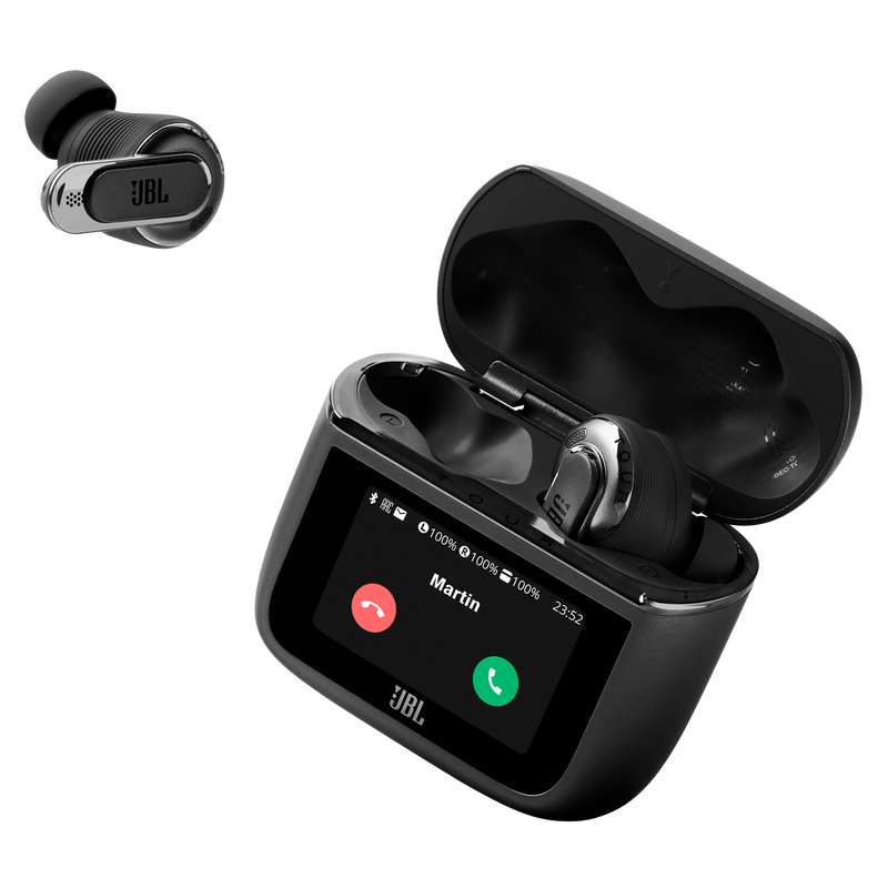 Get ready for the smartest True Wireless earbuds yet. JBL Tour Pro 3 earbuds come in a newly redesigned Smart Charging Case (TM) with a handy and more feature-packed touchscreen, giving you full control over your listening experience—while your phone stays in your pocket. Connect seamlessly with any Bluetooth device and immerse yourself in your music, movies, and games with JBL Spatial 360 sound with head tracking. The JBL Tour Pro 3 are also powered by legendary Hi-Res JBL Pro Sound. When it’s time to work, tune out the world with Real-Time True Adaptive Noise Cancelling. On a flight, use the Smart Charging Case (TM) as an audio transmitter dongle to wirelessly connect to the inflight system (or PC) and enjoy cinematic sound experience while you're in the air. Or at your desk, easily connect the Smart Charging Case (TM) to your computer, for perfect call quality.