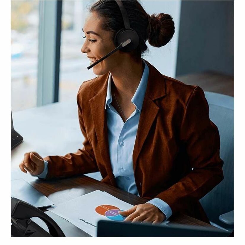 The Yealink WH64 Dual Teams headset is engineered for communication and audio clarity, making it ideal for professionals who rely on clear conversations. With a frequency response range of 100 - 8000 Hz for audio input and 20 - 20,000 Hz for audio output, this headset ensures that every dialogue is crisp and detailed. The Acoustic Shield Technology 2.0 provides noise cancellation, reducing background noise and enhancing focus during calls. Its wireless connectivity through DECT and Bluetooth 5.2 allows users to move freely up to 50 m, while the intuitive controls for mute, volume, and call management ensure user convenience. Additionally, the headset features a busy light LED indicator for better visibility during meetings, while the flip-to-mute microphone offers instant privacy when needed. With a rechargeable battery providing up to 195 hours of standby time, the Yealink WH64 is ready for work sessions without interruption.