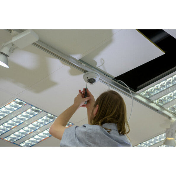 AXIS T91A33 is designed to be compatible with a wide range of Axis cameras and camera stands. The mount is available in white and black to easily blend in with the lighting track system.