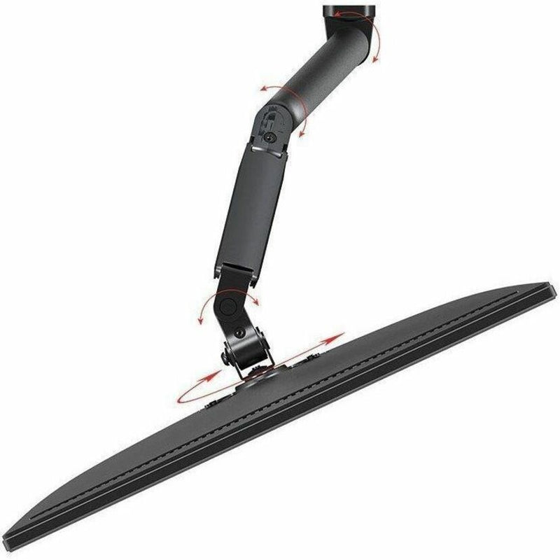 This mount provides full adjustability for monitors, including vertical and horizontal tilt, height level adjustment, and portrait or landscape orientation rotation. The extra arm segment provides additional length and a wider range of screen position options.