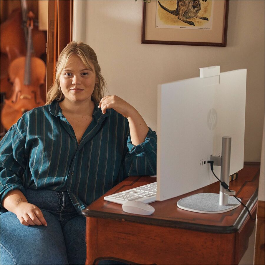 This slim, HP 27" All-in-One Desktop PC empowers you to do more while using less. Responsibly manufactured using post-consumer recycled and ocean-bound plastics and is EPEAT® Gold Registered and ENERGY STAR® Certified. With a powerful processor, upgraded memory and enhanced multitasking features, there's no compromise for heightened performance.