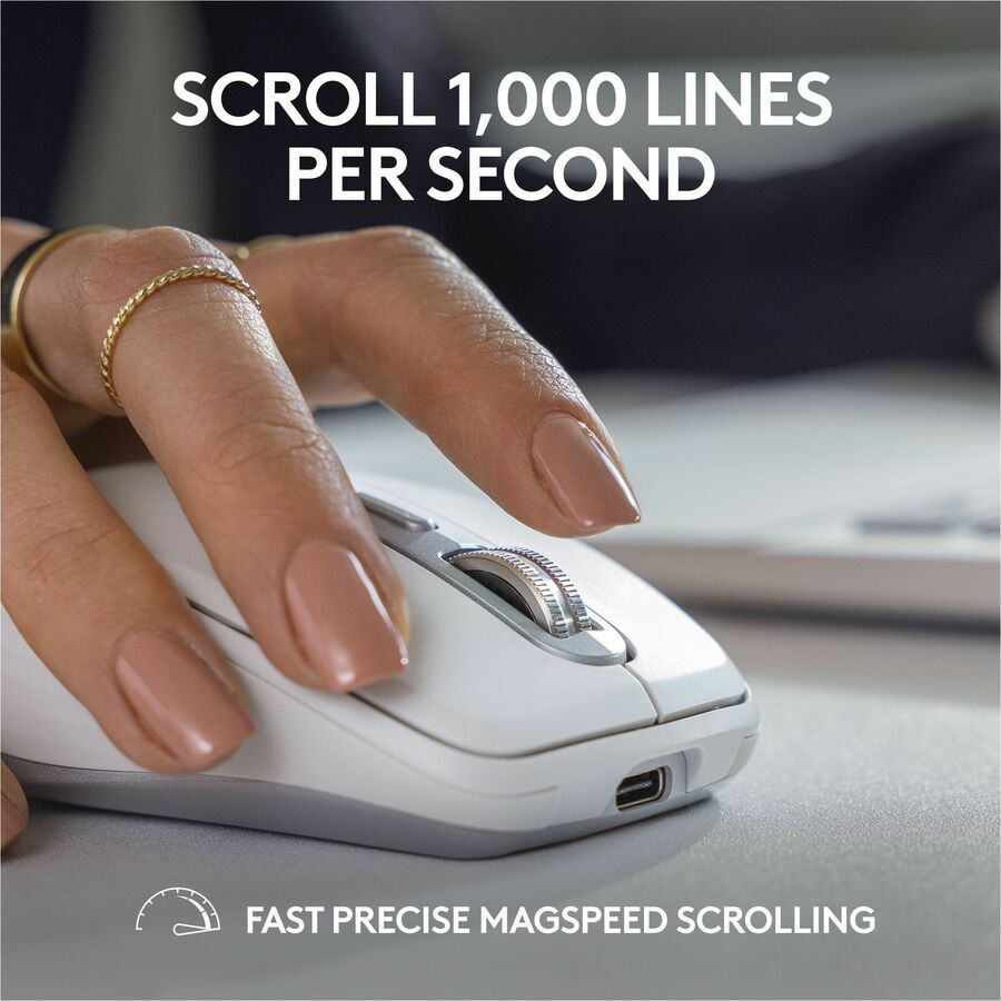 Introducing MagSpeed scroll wheel: Logitech's fastest, quietest, and most precise scrolling experience ever. Scroll through 1,000 lines per second with hyper-fast mode which is up to 90% faster. And Ratchet mode is 87% more accurate so you can truly stop on a pixel.