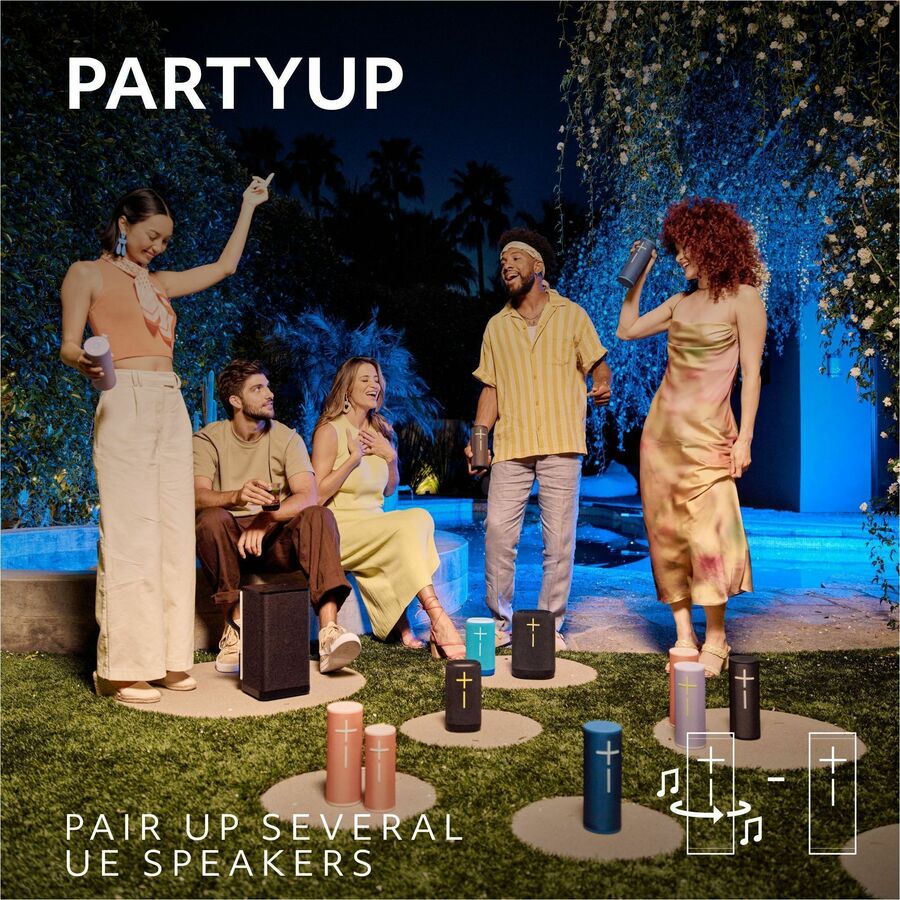 Use PartyUp on the UE | BOOM App to pair 1, 2 , 3... and over 150 speakers and create the ultimate sound experience. You can combine multiple BOOM 4, MEGABOOM 4, EVERBOOM, EPICBOOM and HYPERBOOM speakers or even pair them with previous generation BOOM speakers. Build a wall of sound? No problem.