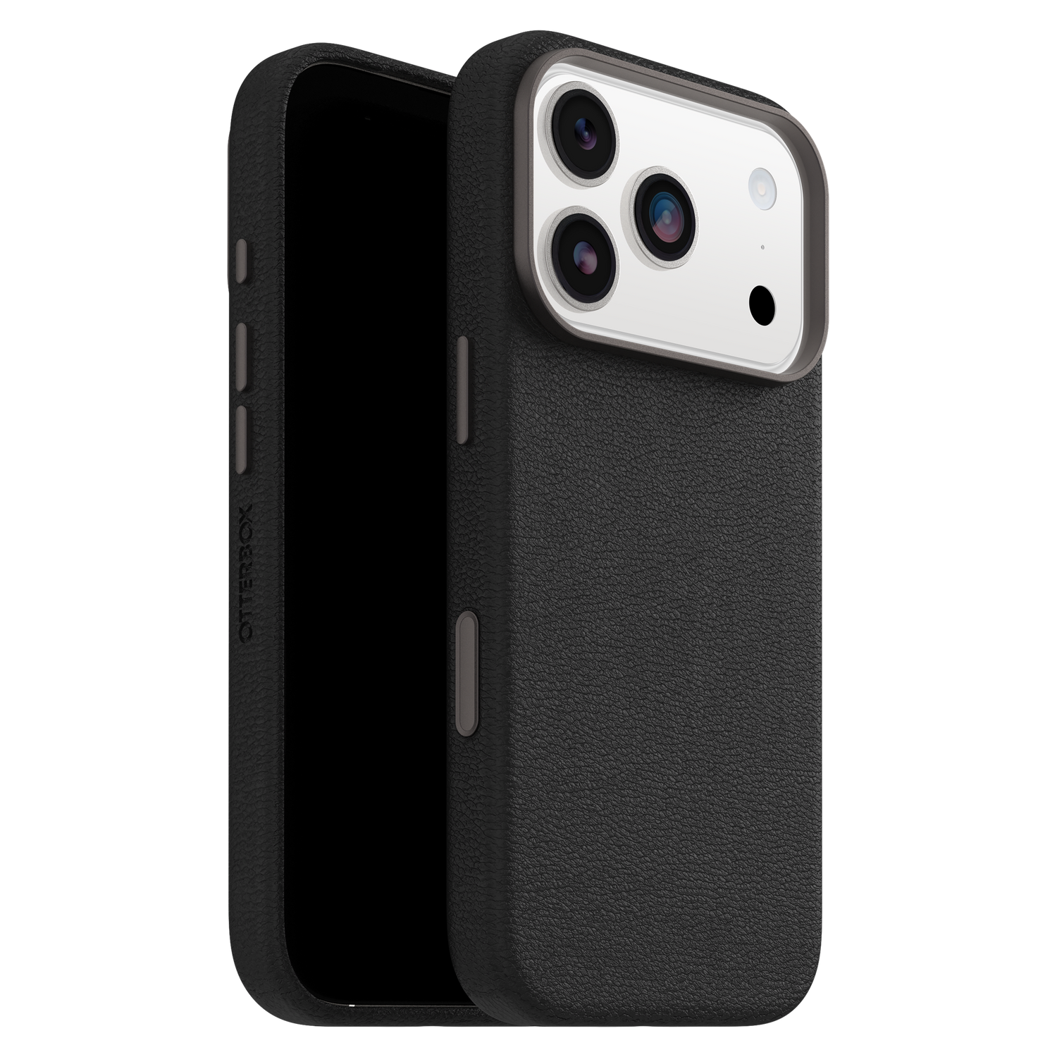 Protect your Apple iPhone 17 Pro with the OtterBox Symmetry Cactus Leather MagSafe Case in Noir Ash. Crafted with premium cactus leather, this case combines sophisticated style with durable protection. The slim profile ensures a comfortable grip while maintaining the sleek design of your device. The case's precise cutouts provide easy access to all ports and buttons, ensuring seamless functionality without removing the cover.