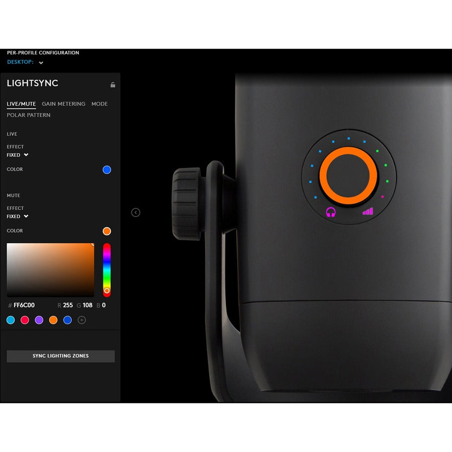 Yeti X is plug 'n play on Mac and PC right out of the box, but it also integrates deeply with Logitech's G HUB platform for even more control. With G HUB, you can customize the color of Yeti X's LED lights to match your on-stream aesthetic. And, you can use G HUB to manage your mic gain, headphone volume, monitoring preferences, and pickup pattern selection right from your desktop.