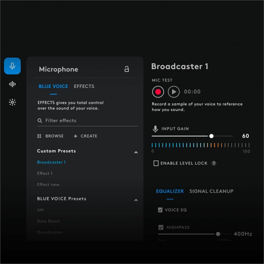 - Blue VO!CE Filters and Effects: Enable Smart Audio Lock and other studio tools; add Blue VO!CE filters, effects and samples to entertain and engage your audience on stream