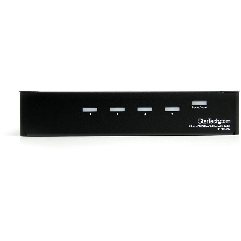 The ST124HDMI2 4 Port High Speed HDMI® Video Splitter with Audio lets you share a single HDMI source with up to 4 HDMI or DVI-D enabled displays/receivers, without sacrificing image or sound quality. Mounting brackets are included for a tidy, professional installation.