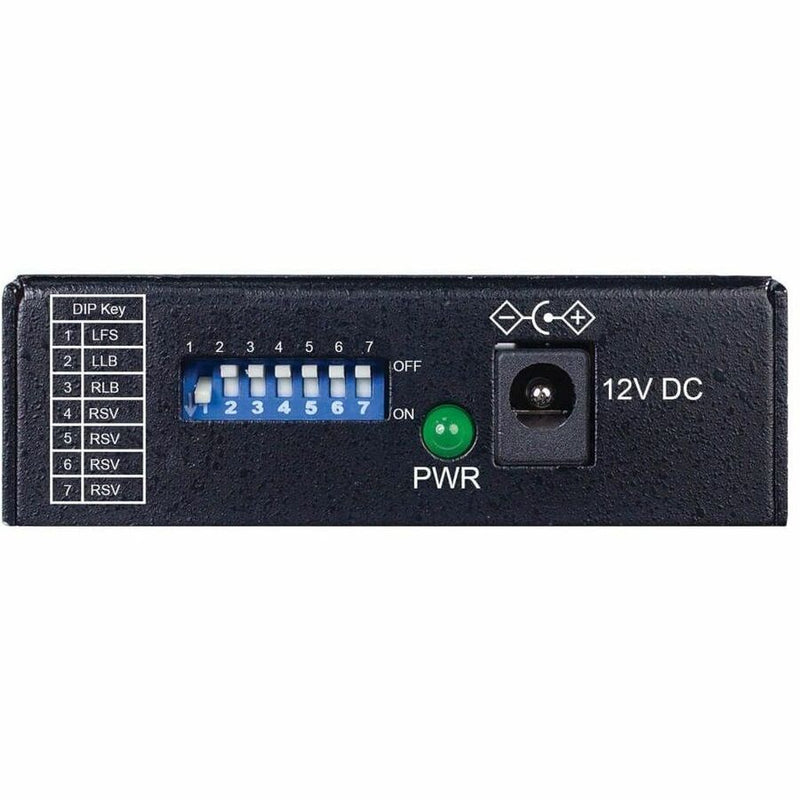 Determine the health of your network connection via the Link Fault Signaling (LFS) and Loop Back functions. The LFS LED indicates when a copper or fiber cable has been severed or another cause of disruption in service has occurred. The Local Loop Back (LLB) and Remote Loop Back (RLB) functions ensure copper and fiber cables have been correctly installed. Use the DIP switches to control each function or turn them on or off.