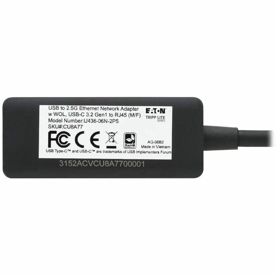 Eaton Tripp Lite Series USB-C to RJ45 Gigabit Ethernet Network Adapter (M/F) - USB 3.2 Gen 1, 2.5 Gbps Ethernet