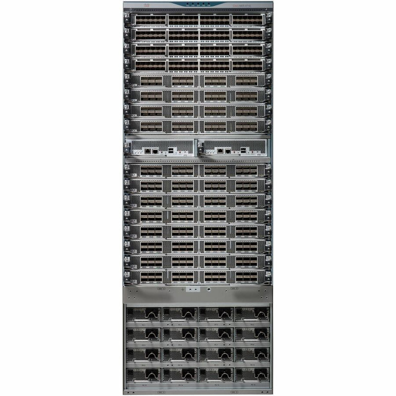 The Cisco MDS 9718 Multilayer Director (Figure 1) has the industry's highest port density for a SAN director, with 768 line-rate 64-Gbps Fibre Channel ports. This new 64-Gbps line card couples the next-generation port ASICs with a fully dedicated Network Processing Unit designed to complete analytics calculations in real time on the 64-Gbps line card. The MDS 9718 also supports Cisco MDS 9000 24/10-Port SAN Extension Module. It is designed for deployment in midsize to large enterprises. The MDS 9718 enables SAN consolidation and collapsed-core solutions for large enterprises, thereby reducing the number of managed switches and leading to easy-to-manage solutions, providing more front-panel ports by reducing the number of ports used on Inter-Switch Links (ISLs), and offering room for future growth.