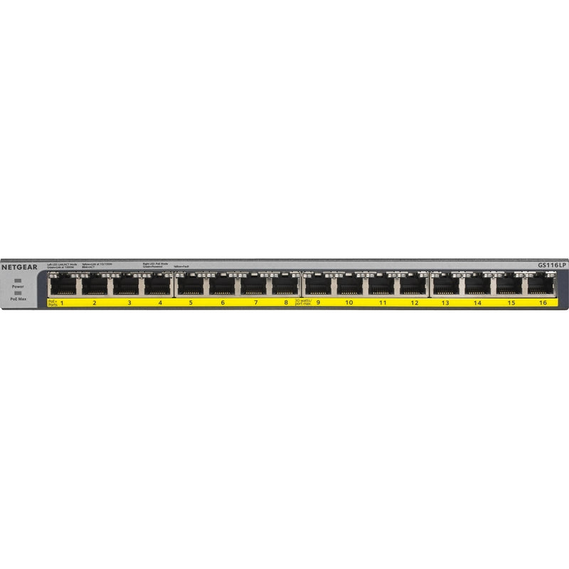 Introducing the NETGEAR GS116LP 16-Port Gigabit Ethernet Unmanaged Switch with 76W PoE budget. The Industry's first flexible PoE+ integrated technology allows you to increase or decrease the PoE budget at any time to provide to your devices the power that they need with interchangeable external power supply and an intuitive power selector.The compact and fanless design makes the GS116LP the ideal cost-effective and future-proof solution for any home or business environment.