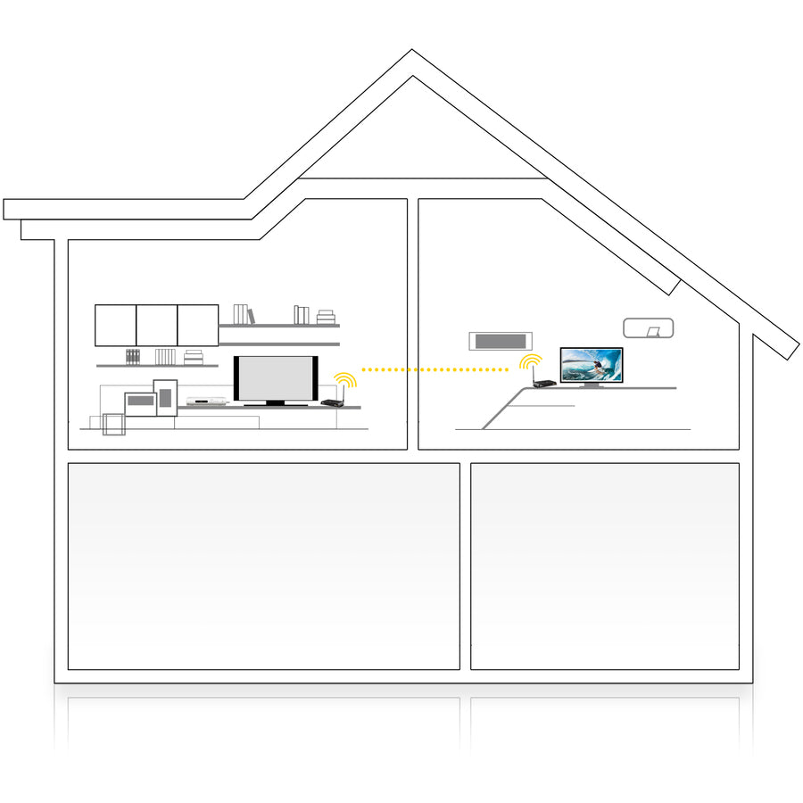 - Transmits HDMI A/V signals wirelessly up to 165ft through line-of-sight environment