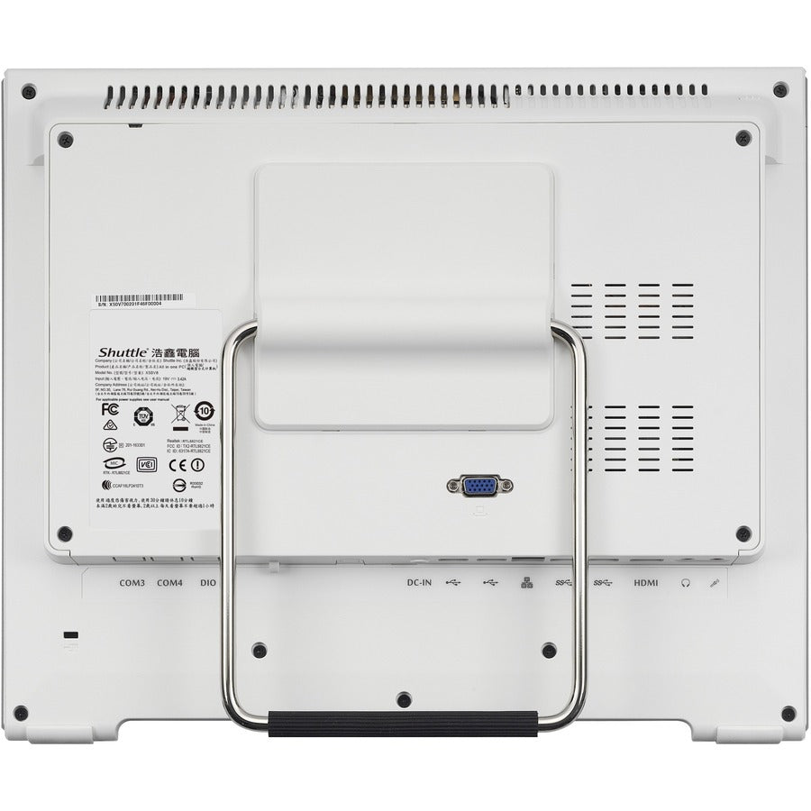 The Shuttle XPC all-in-one X50V8 is the latest addition to the X50 Series and is powered by an Intel ULV processor of the 10th generation "Comet Lake". The modern processor architecture helps improve on power consumption and computing power. Thanks to its passive cooling, the system is virtually noiseless, maintenance-free and approved for 24/7 nonstop operation. Particularly suitable for vertical applications is the arrangement of connectors at the bottom and the IP54 compliant front panel which is dust-protected and protected from splashing of water.