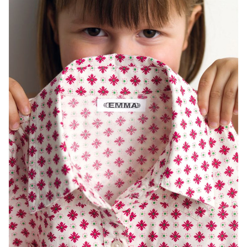 LT Fabric Iron-on Labels offer a convenient way to label your clothes, towels and more. Using your LetraTag 100T Plus, print your message or name on this special paper material. Then iron on your label cut to your required length for added visual impact and easy communication. You won't have to spend time sewing labels into clothing, towels or backpacks. Apply these machine-washable labels on clothing and fabrics.