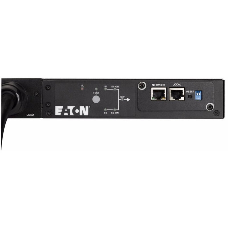 Eaton ATS rack PDU, 1U, (2) L6-20P, (2) C20 input, 3.33 kW max, 200-240V, 16A, 8 ft cord, Single-phase, Outlets: (8) C13, (1) C19