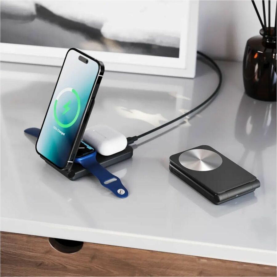 With wireless charging for your three most important devices in a single compact charger, you can say goodbye to the hassle of carrying a tangled bag full of cables and chargers when leaving home.