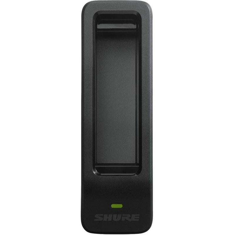 The single battery sled charger can be powered from AC power sources and USB ports to charge one Shure SB904 Lithium-Ion Rechargeable Battery for use with GLX-D+ Digital Wireless Transmitters