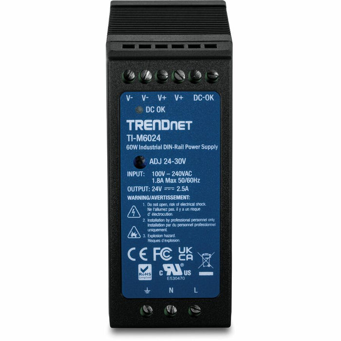 TRENDnet TI-M6024, 60W, 24V DC, 2.5A AC to DC DIN-Rail Power Supply