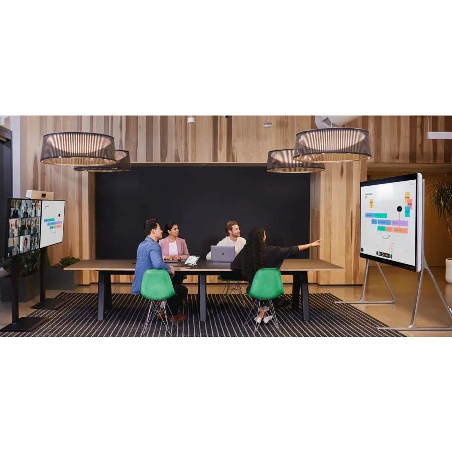 Not only is the Webex Board beautiful to behold and effortless to use, it is also affordable to acquire and easy to install and deploy, so that it can be a fixture in your larges conference and training rooms. The Webex Board 85 also has a unique wheel-based packaging and transport frame that makes it easy to move and assemble. With wheels on three corners of the aluminum frame, the 220-pound Webex Board 85 can easily fit into standard elevators and doorways.