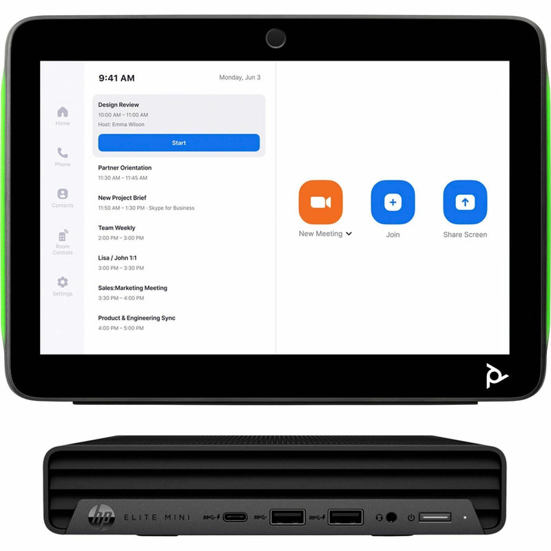 Transform your BYOD room with the Poly Base Room Kit, featuring an HP collaboration PC with a robust Intel® Core™ i7 CPU. Effortlessly control your meetings using the sleek 10-inch Poly TC10 touch controller