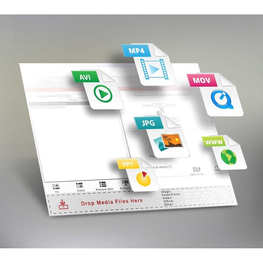 - Software support for most common media formats including photos, video, PowerPoint, web pages and more