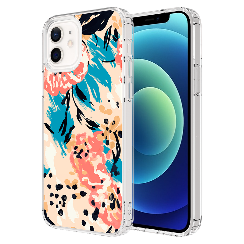Ampd - Tpu / Acrylic Hd Print Case For Apple Iphone 12 - Floral Blue Pattern