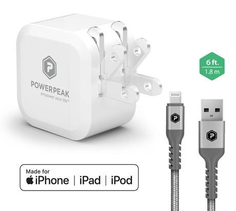 PowerPeak Single Port Rapid Wall Charger With Lightning Cable {12 Watts}
