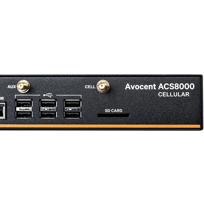 The Vertiv Avocent ACS8000 Cellular advanced serial console server series delivers secure in-band and out-of-band visibility and control to downstream equipment in enterprise data centers, as well as cloud and colocation facilities. Now with cellular capabilities, the Vertiv Avocent ACS8000 Cellular provides flexibility to access devices when wired networks are down (failover) or not available at the device location. This serial console system serves as a secure management gateway and single point of entry keeping you connected to critical IT equipment even in the event of partial or total data center outages. With environmental monitoring, IoT integration, and remote networking abilities, the Vertiv Avocent ACS8000 Cellular is ideal for edge locations, enterprise data centers, and hyperscale or colocation facilities.