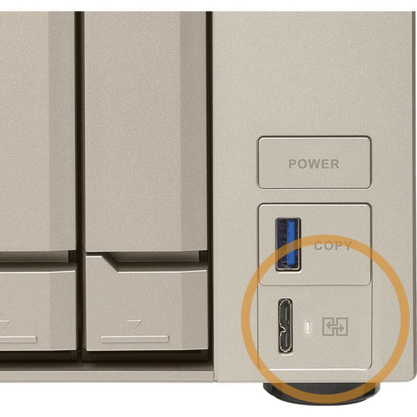Equipped with a next-gen AMD R-Series RX-421BD quad-core 2.1 GHz APU (Turbo Core up to 3.4 GHz) with up to 64GB dual channel DDR4 RAM, the TVS-673e enables lightning-fast multi-tasking with low power consumption for up to 1139 MB/s throughput with a 10GbE configuration. With a hardware-accelerated encryption engine with AES-NI, the TVS-673e also provides unmatched encryption performance in its class (up to 1003 MB/s with AES 256-bit full NAS volume encryption) to boost system performance, security, and ensuring the safety of sensitive business data stored in the NAS.